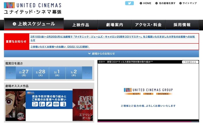 シネマコンプレックス大手のユナイテッド・シネマ(東京都品川区)は、「ユナイテッド・シネマ幕張」(千葉市美浜区)で2023年2月10日~20日に上映した『タイタニック:ジェームズ・キャメロン25周年3Dリマスター』を鑑賞した一部観客からチケット代を400円分多く徴収していたとして、同店の公式サイト上で2月27日までに謝罪した。