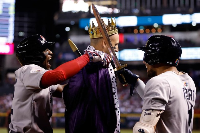 WBCイギリス代表の「戴冠式」パフォーマンス(写真:USA TODAY Sports/ロイター/アフロ)