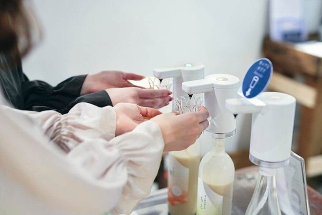 「弊社は以前より直売店でテイスティングを行っており、コロナ禍前はボトルをお客様ご自身で持って注いで頂く方式でした。 新日本流通様にはボタン式のディスペンサーの作成を進めていただいていたのですが、コロナ禍になったため、人との接触を極力減らすために手指の消毒ディスペンサーのような方式で、非接触で酒を注ぐものを作っていただけないかとご相談させていただきました」