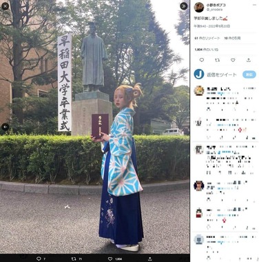 衝撃的な形でグループを脱退した小野寺さんは、その後早稲田大学を卒業。2023年から米カリフォルニア大学バークレー校(UCバークレー)に進学するという。