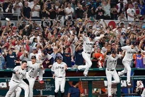 9回表、大谷翔平選手がマイク・トラウト選手を空振り三振に仕留め、日本が優勝を決めた。グラブと帽子を放り投げ喜びを爆発させる大谷選手のもとにナインが集まり、歓喜の輪ができた。選手同士で抱き合ってひとしきり喜びを分かち合い、記念Tシャツに着替えると、栗山英樹監督を先頭に三塁線に整列。帽子を取ってアメリカチームに一礼し、スタンドのファンに向かって手を振った。