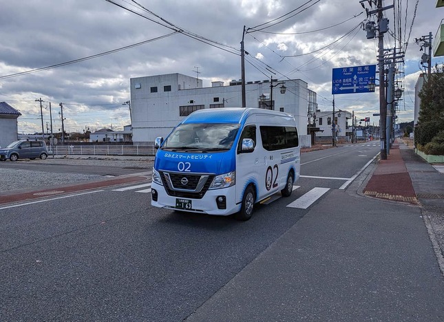 駅のバス乗り場で、大型のタッチスクリーンを見つけた。町役場や「道の駅なみえ」、大型ショッピングモールといった行先が並び、タッチ操作で車を呼ぶ「なみえスマートモビリティ」(スマモビ)のサービスだ。日産自動車が21年2月、浪江町で実証実験を開始した。