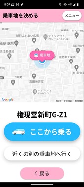 メインの呼び出しツールはスマホだ。専用アプリをインストールし、利用者登録しておく。乗車地は駅などの大型施設のほか、アプリに表示される地図から指定できる。ユニークなのは、地図上に「バーチャル停留所」が多数現れる点だ。町の中心部は徒歩1分以内に、郊外では利用動向を踏まえて登録者の自宅付近などに作られる。利用者の声を拾い、数を増やしている。遠くまで歩かなくても乗車できるので、特に子どもや高齢者は助かるだろう。