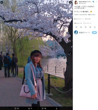 シンガーソングライター、モデルで、チョウの生態を研究しているというReina+World(レイナワールド)さんが2023年4月4日にツイッターを更新。16キロのダイエットのビフォーアフター写真を公開した。