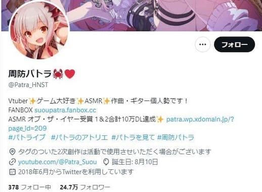 人気Vtuberの周防パトラさんが2023年5月9日、この日で所属事務所「774(ななしいんく)」(東京都新宿区)を退所し、独立すると発表した。