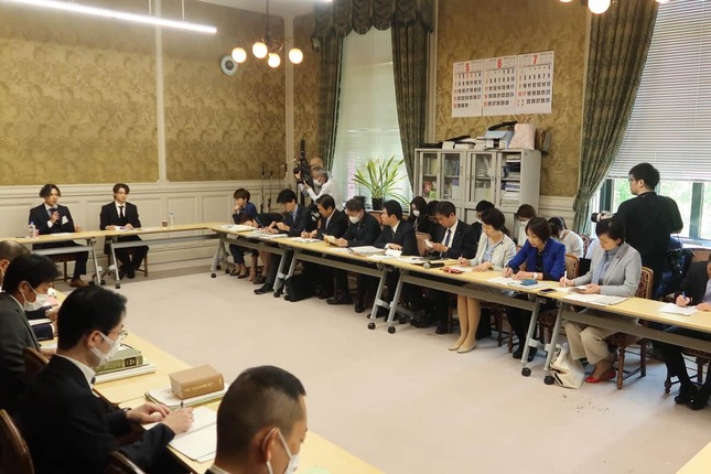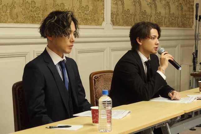 ジャニー喜多川氏=2019年に87歳で死去=による性加害問題をめぐり、喜多川氏による被害を訴えている歌手のカウアン・オカモトさん(26)と俳優でダンサーの橋田康さん(37)が2023年5月16日、国会内で立憲民主党が開いた「『性被害・児童虐待』国対ヒアリング」に出席した。