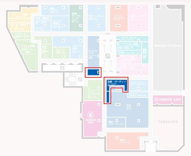 注目を集めたのは今年2月にオープンした池袋東武店で、大創産業の主要ブランド「DAISO」、「Standard Products」、「THREEPPY」がワンフロアに集う旗艦店だ。3ブランドを合わせた売り場面積は都内最大級で、「流行の発信基地」となる売り場を目指すとしている。オープン時のプレスリリースでは「日本で一番推し活に強い店舗」と告知していた。