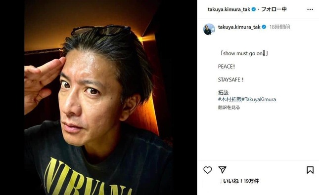 木村さんは、故ジャニー喜多川氏による性加害問題についてジャニーズ事務所が開いた会見終了後、インスタグラムを更新。敬礼風のポーズを取った自身の写真と共に「show must go on!」というジャニー氏のモットーとして知られる慣用句を投稿し、賛否両論を呼んでいた。批判の声が強まったのを受けてか、木村さんはこの投稿を10日までに削除している。