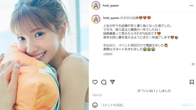この投稿には「サバサバしててハキハキしてる男受け狙ってない感じが本当に大好き」「このコメント返しは流石としか言いようがない」「自分の短所だと思ってるところはめちゃくちゃ素敵な武器になるかもってなんだか勇気をもらった」といったコメントが寄せられている。