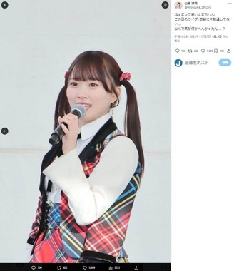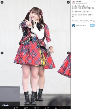 アイドルグループ「AKB48」の山根涼羽さんが2023年11月27日、X(旧ツイッター)で、ライブの衣装の着方を間違えていたことを写真つきで明かし、笑いが広がっている。
