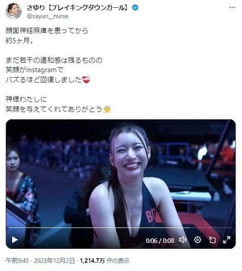 12月2日には、「顔面神経麻痺を患ってから約5ヶ月。まだ若干の違和感は残るものの笑顔がInstagramでバズるほど回復しました」と報告。「神様わたしに笑顔を与えてくれてありがとう」と満面の笑みを披露していた。