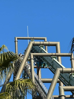 USJのアトラクション「ザ・フライング・ダイナソー」は、米SF映画「ジュラシック・パーク」の世界で恐竜プテラノドンに背中をつかまれて空を飛ぶという想定のコースターだ。報道によると、2023年12月14日午前10時55分ごろ、地上約40メートルの頂上付近で緊急停止した。このコースターには、定員いっぱいの32人が乗っており、スタッフがレール脇の非常階段から近づき、救助用のゴンドラに客を降ろして、階段へ誘導した。