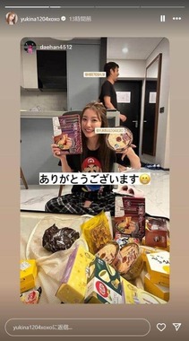木下優樹菜さんのインスタグラム(@yukina1204xoxo)より。パク・デハンさんのインスタグラム(@daehan4512)をリポストしたもの。