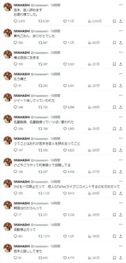 岩橋さんは20日にXで、芸能人の実名を挙げて過去にエアガンで撃たれたなどと投稿し、波紋を呼んでいた。