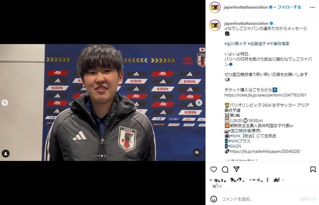 • 日本代表・古賀塔子(なでしこジャパンインスタグラムより)