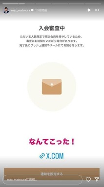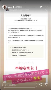また、松浦氏は同日、インスタグラムのストーリーズにも審査結果の画面を投稿し、「本物なのに!」と訴えていた。