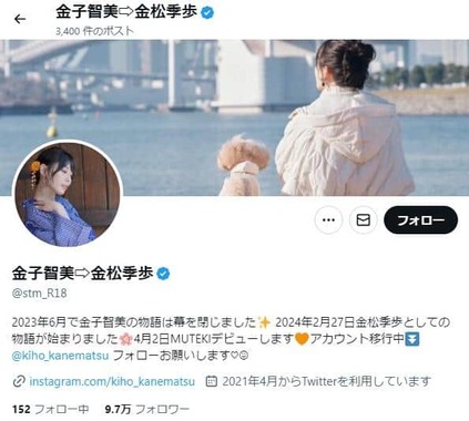 かつて「金子智美」として活動していた金松さんは、23年6月に芸能界を引退。24年2月27日に、現在の名義で復帰していた。
