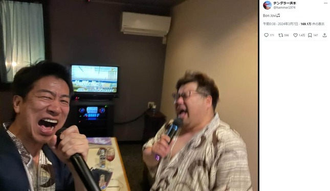 浜本さんは3月7日にXで「Bon Jovi」とだけつづり、浴衣姿の浜本さんと岩橋さんが、カラオケでロックバンド「Bon Jovi」の「Livin' On A Prayer」を熱唱しているとみられる写真を公開した。