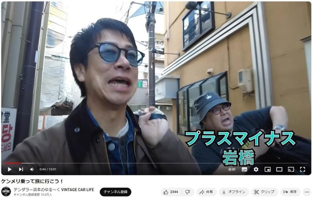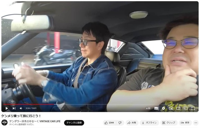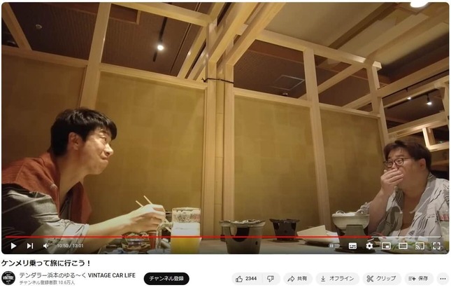 浜本さんと岩橋さんは、YouTubeチャンネル「テンダラー浜本のゆる~く VINTAGE CAR LIFE」で2月15日に公開された動画でも、仕事終わりにプチ旅行をするという企画で、共に旅館に泊まっていた。