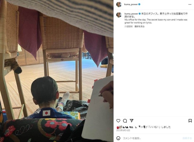 宇多田ヒカルさんのインスタグラム(@kuma_power)より
