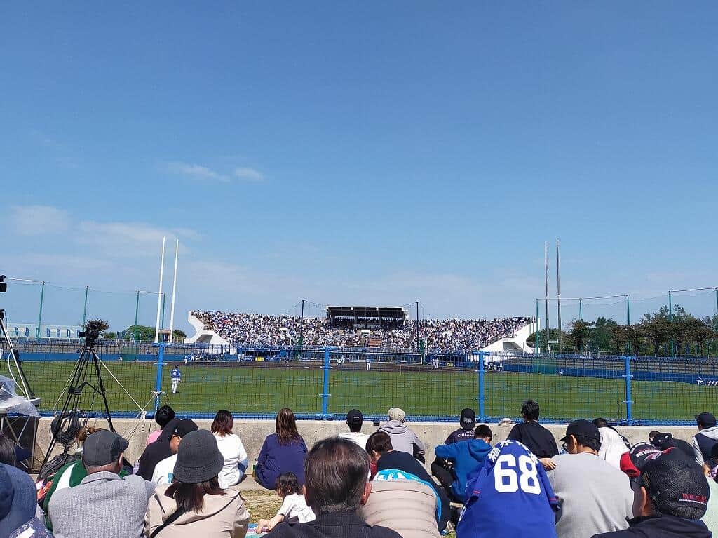 李さん 試合を観ながら選手のことを教えていただいています。初めて今回沖縄のキャンプに来ましたが、大勢のファンがいらしているのを見て、チームの魅力をあらためて感じました。