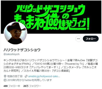 ザコシショウさんのX -