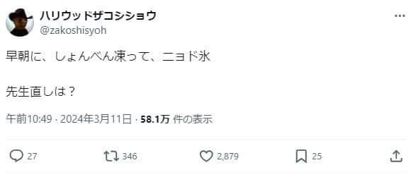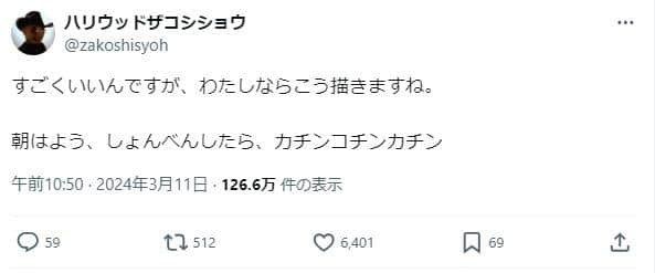 — ハリウッドザコシショウ (@zakoshisyoh) March 11, 2024