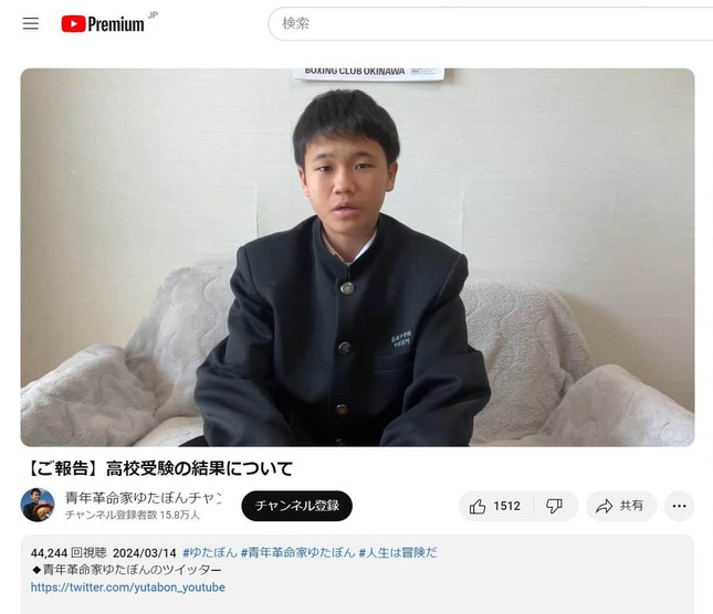 元不登校YouTuberで「青年革命家」として活動するゆたぼんさんが2024年3月14日、高校受験の結果をXとYouTubeの動画で明かした。