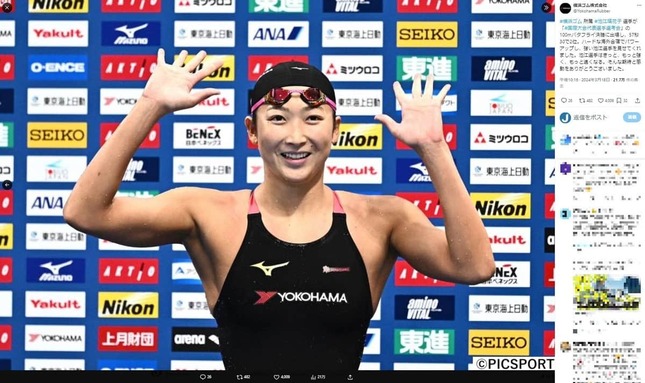 池江選手は19日にXで「パリ行くよ!!行けるよ!!」と喜び、次の通り伝えている。