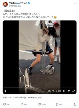 アイドルグループ「おちゃメンタル☆パーティー」の下谷あゆさんが2024年3月18日にXを更新し、イベント中の動画を投稿した。強風のイベント会場での下谷さんの行動がXユーザーから注目を集めている。