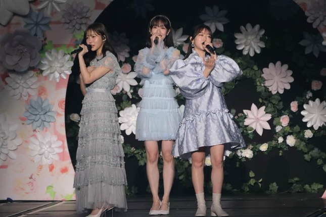 上京時の心境と故郷への思いをうたった「火山灰」(12年)で幕を開け、「ポニーテールとシュシュ」(10年)「フライングゲット」(11年)といったグループの定番曲、初めて単独センターを務めた最新曲「カラコンウインク」(24年)、所属している「チームB」のオリジナル公演曲のひとつ「初日」(08年)など、延べ33曲を次々に披露。