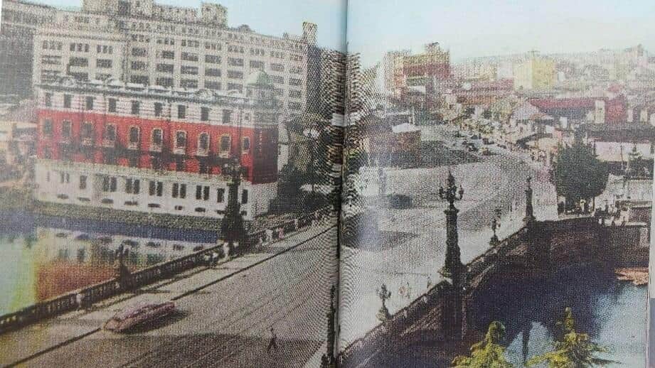 1935年の日本橋でした。震災から12年で復興も進んでいた。2040年ごろには首都高速が撤去され、日本橋の上に空が広がる計画である。