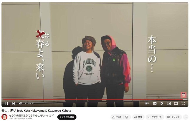 動画の後半では、シンガーソングライター・松任谷由実さんの楽曲「春よ、来い」を2人がラップの替え歌で披露。歌詞では報道やSNSの一部反響に苦言を呈している。最後には「本当の...文春(はる)よ、来い」と歌い、字幕の「文」部分にはバツ印がついていた。