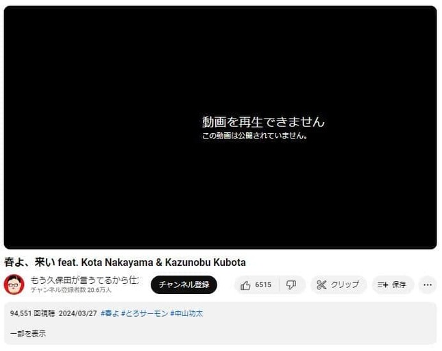 お笑いコンビ「とろサーモン」久保田かずのぶさんのYouTubeチャンネルで2024年3月27日に公開されたYouTube動画が、28日に一時的に非公開となり、Xで動揺が走った。