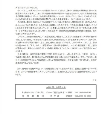 宝塚歌劇団、パワハラ認め遺族へ謝罪 経営陣、現場活動への「無理解や無配慮」も