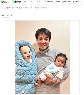 腹話術氏・いっこく堂さん(60)が2024年3月28日、23年末に初孫が誕生したことをブログで報告し、人形と赤ちゃんを両手に抱えた写真を公開した。