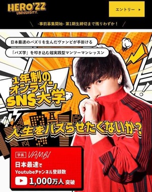 人気YouTuber・ヴァンビさんが2024年3月26日、「SNS大学」を始めるとXで発表した。SNSフォロワーや「案件」の獲得を目指すオンラインレッスンのサービスだ。