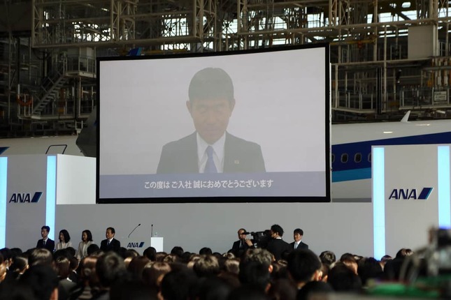 2024年4月1日に羽田空港で行われた日本航空(JAL)や全日空(ANA)の入社式では、アスリートからもお祝いのビデオメッセージが寄せられた。JALでは、米大リーグのロサンゼルス・ドジャースで活躍する大谷翔平選手(29)が、ドジャースのユニフォーム姿で「どんなときも前向きに明るく」などとエールを送った。
