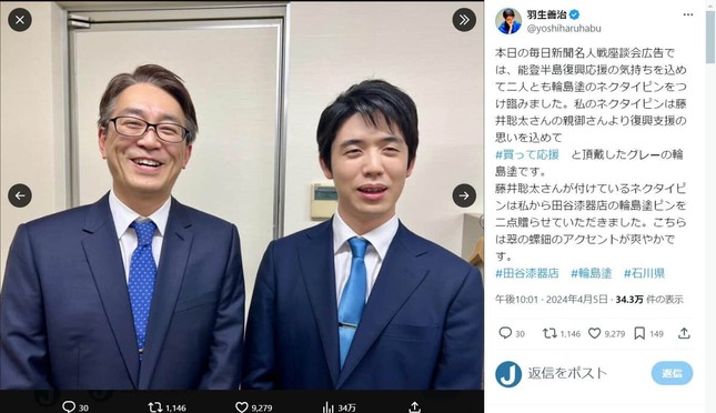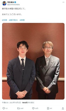 • 羽生九段と藤井叡王(羽生九段のX(@yoshiharuhabu)より)