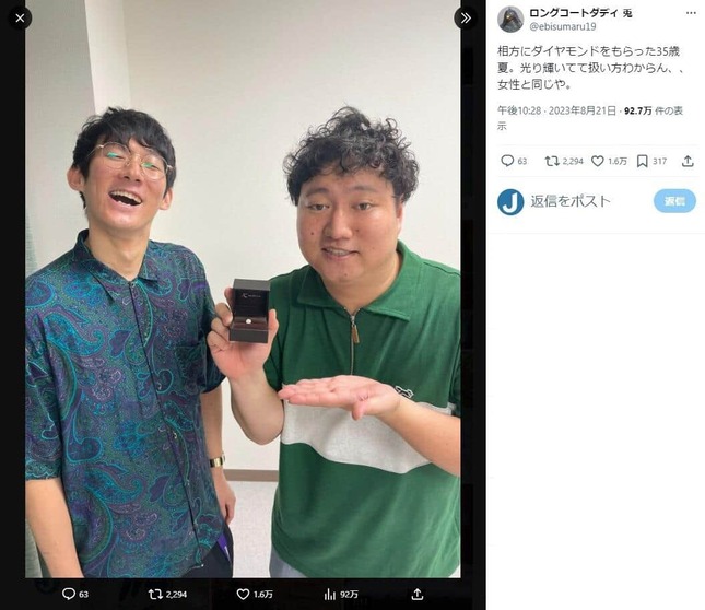 • ロングコートダディ・兎さんのX(@ebisumaru19)より