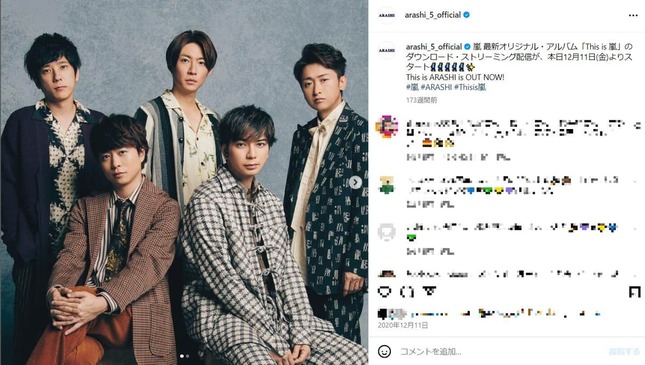 メッセージにはメンバー5人が連名で記されており、20年12月31日をもって活動休止に入った大野智さんの名前もあった。
