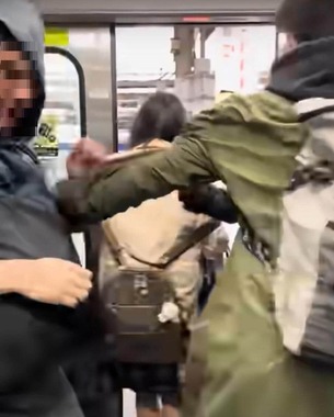 他にも、電車内でトラブルを目撃した人が、X上で別角度の動画を投稿しており、それを見ると、年配男性が若い男性に唾を吐き、若い男性が怒って右手で殴るなどしていた。