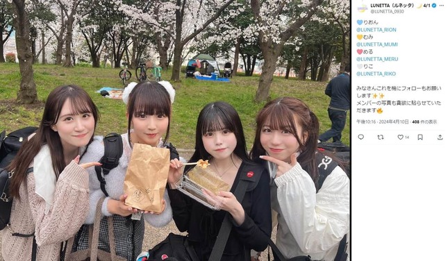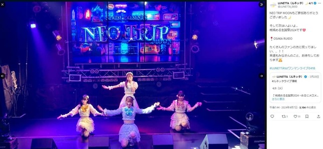 — LUNETTA(ルネッタ)?? 4/18(木)1stワンマンライブ@OSAKA MUSE (@LUNETTA_0930) April 10, 2024