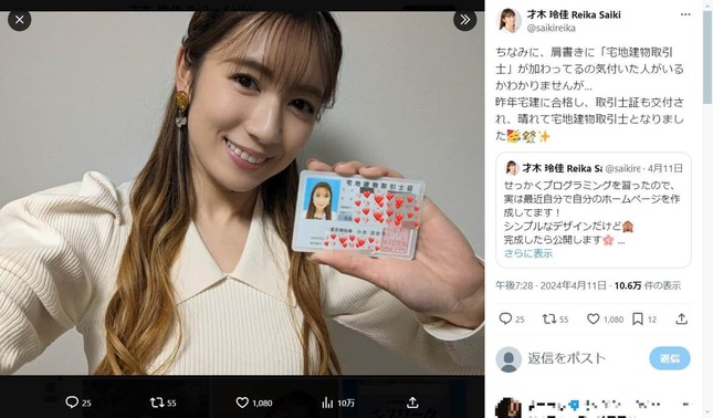 — 才木 玲佳 Reika Saiki (@saikireika) April 10, 2024