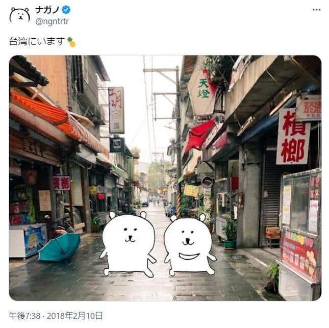 絵の発表当時、18年には、台湾を訪れたナガノさんがXユーザーと交流するなか、「台湾とても楽しかったです!台湾にいる時にメッセージを見て、この国にもくまを知ってる方が...!と不思議な気持ちになりました」とも投稿していた。
