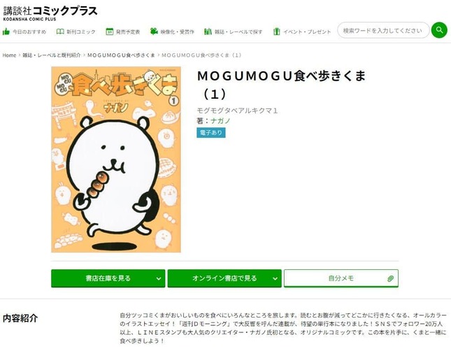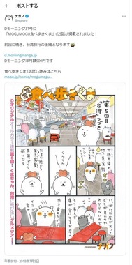 波紋を呼んだのは、ナガノさんが台湾旅行の思い出を描いたイラストエッセイの1コマで、「台湾...いい国だなぁ...」と表現したこと。元々は18年に講談社の青年漫画誌「Dモーニング」に掲載された絵で、後にイラストエッセイが単行本化。19年に発売した書籍「MOGUMOGU食べ歩きくま(1)」に収録されている場面だ。