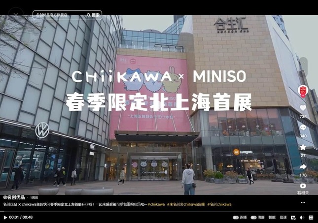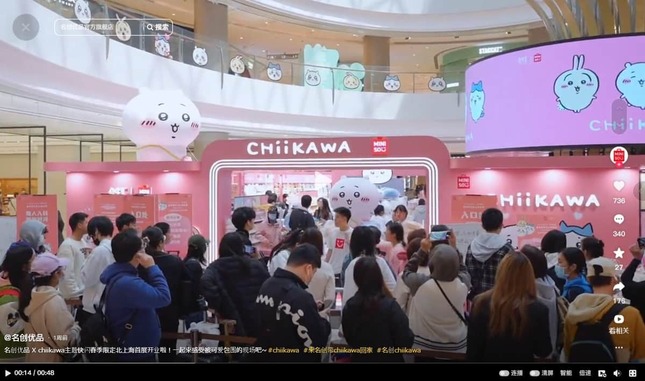 メディアミックスが進む「ちいかわ」は、中国でも、同月に「MINISO」ブランドで知られる雑貨チェーン「名創優品」でコラボ企画が実施されるなど人気が高まっている状況だ。