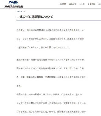 ペットフードなどの缶詰メーカー大手「いなば食品」(静岡市)で、社宅が老朽化して酷かったなどとして入社辞退が続出したと週刊文春が報じ、同社が釈明に追われている。