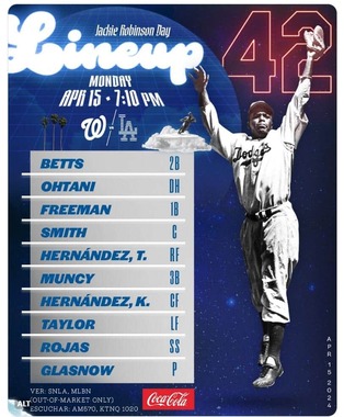 4月15日は初の黒人メジャーリーガー、ジャッキー・ロビンソンがメジャーデビューを果たした日で、「ジャッキー・ロビンソン・デー」とされている。全ての選手が、ジャッキー・ロビンソンが付けた「背番号42」を付けてプレーをする。