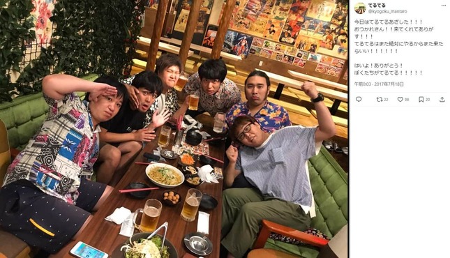 お笑いコンビ「ニッポンの社長」の辻さん(37)が2024年4月15日にXで、お笑いコンビ「ビスケットブラザーズ」、「マユリカ」とニッポンの社長の6人の8年前の姿を披露し、お笑いファンらから反響が寄せられた。